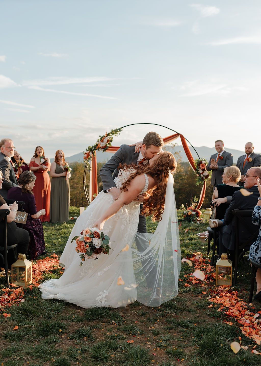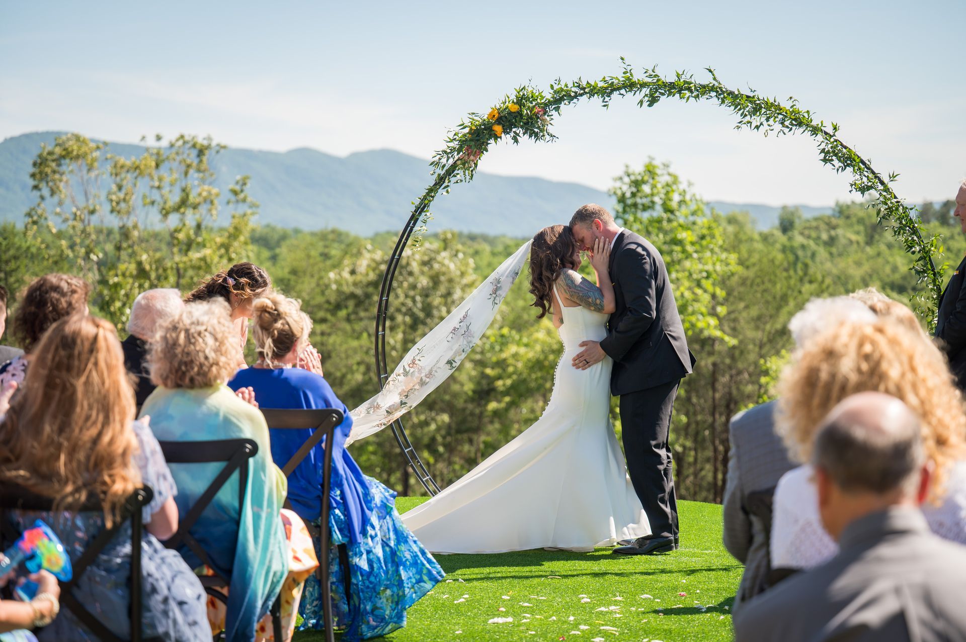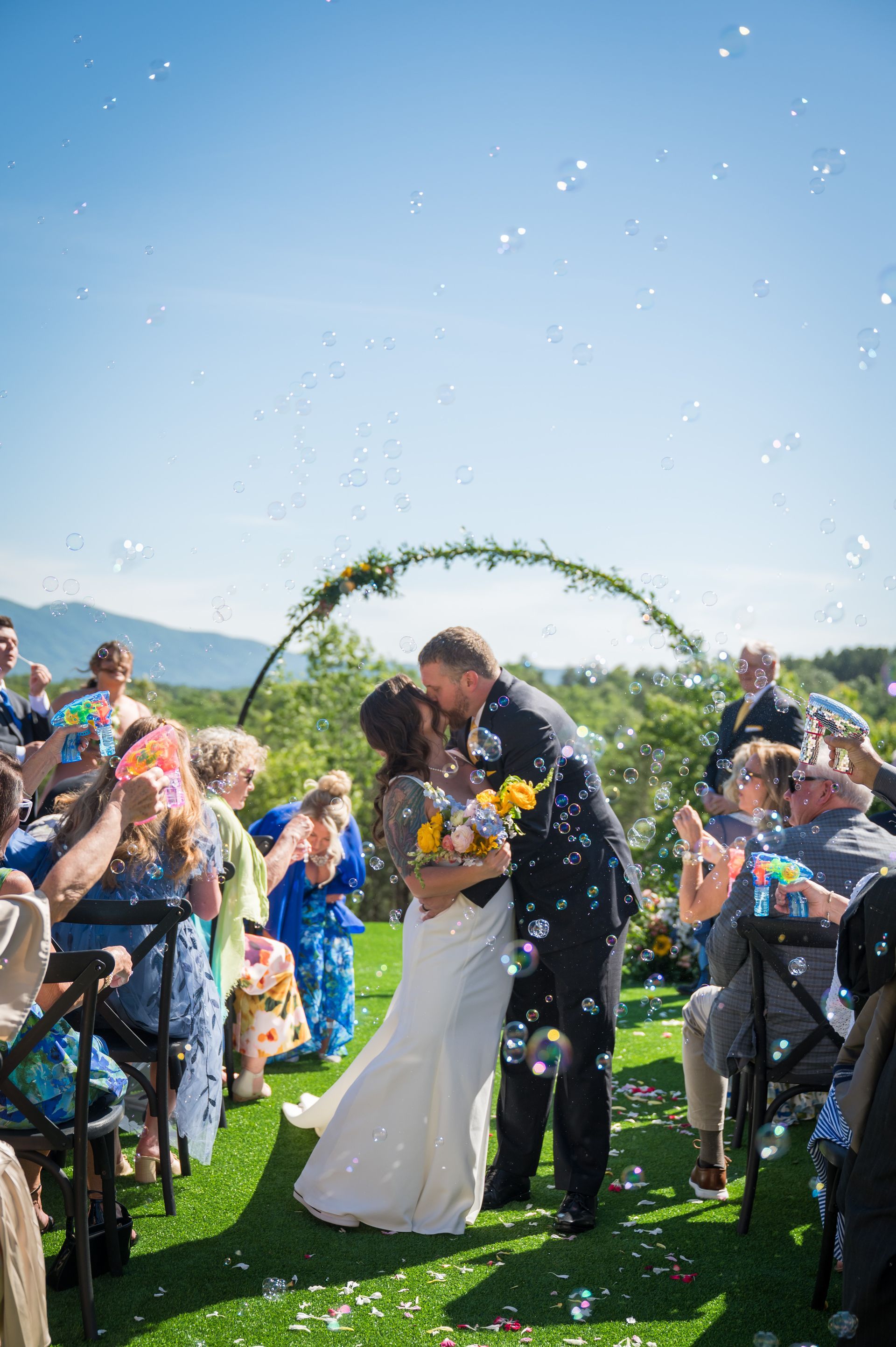 Picture this: your vows framed by the mountains at sunset, florals on the arch, and a scenic lawn as your canvas. Now, explore how our couples have transformed the space to make it their own, and let their creativity spark your own vision. From unique arch designs to aisle décor, these inspiration photos are your key to crafting a day as one-of-a-kind as your love story!