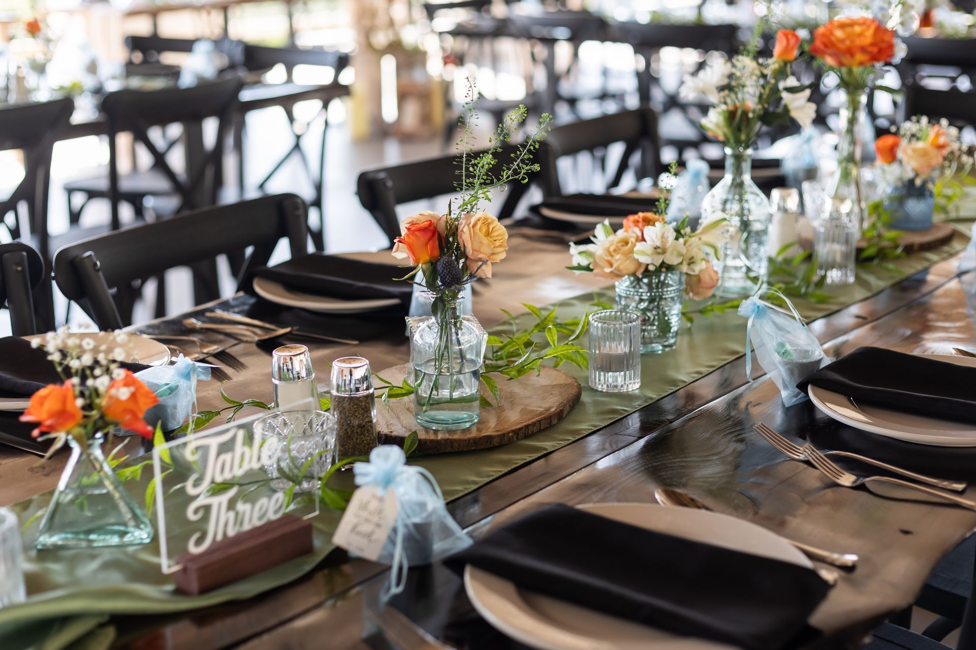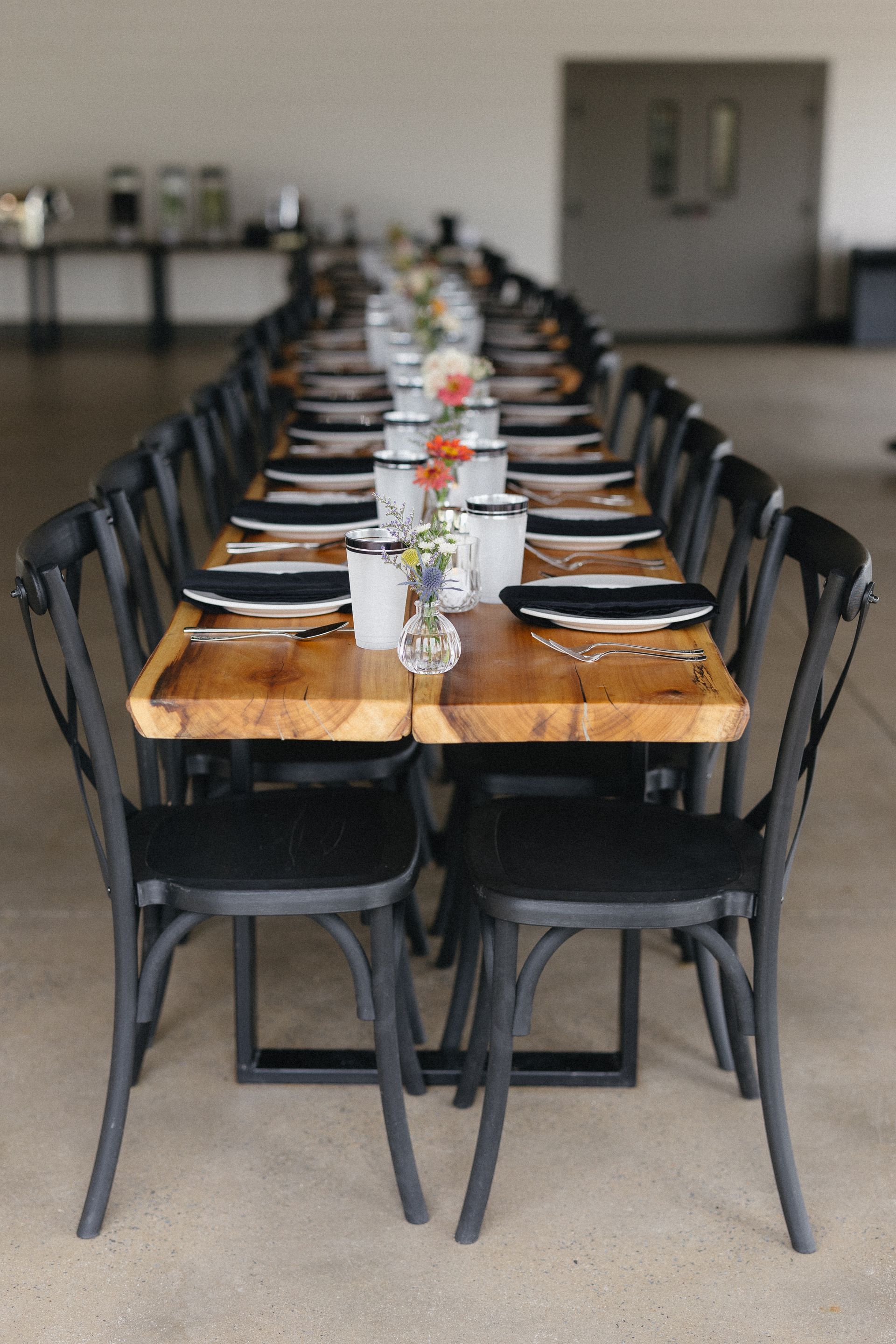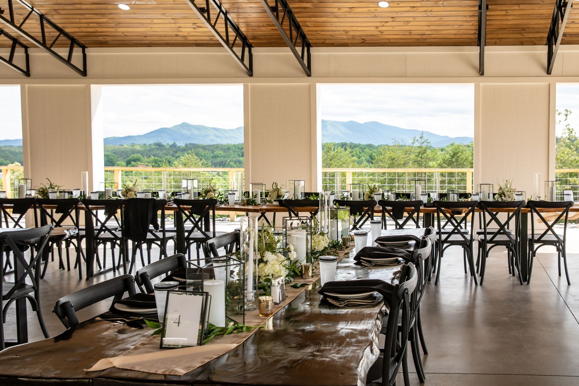 Step inside our Event Pavilion and explore how each couple brought their vision to life—from the layout of live-edge tables and X-back chairs to the personalized tablescapes and every thoughtful detail in between. Let their creativity inspire your own unique choices for an unforgettable reception!
