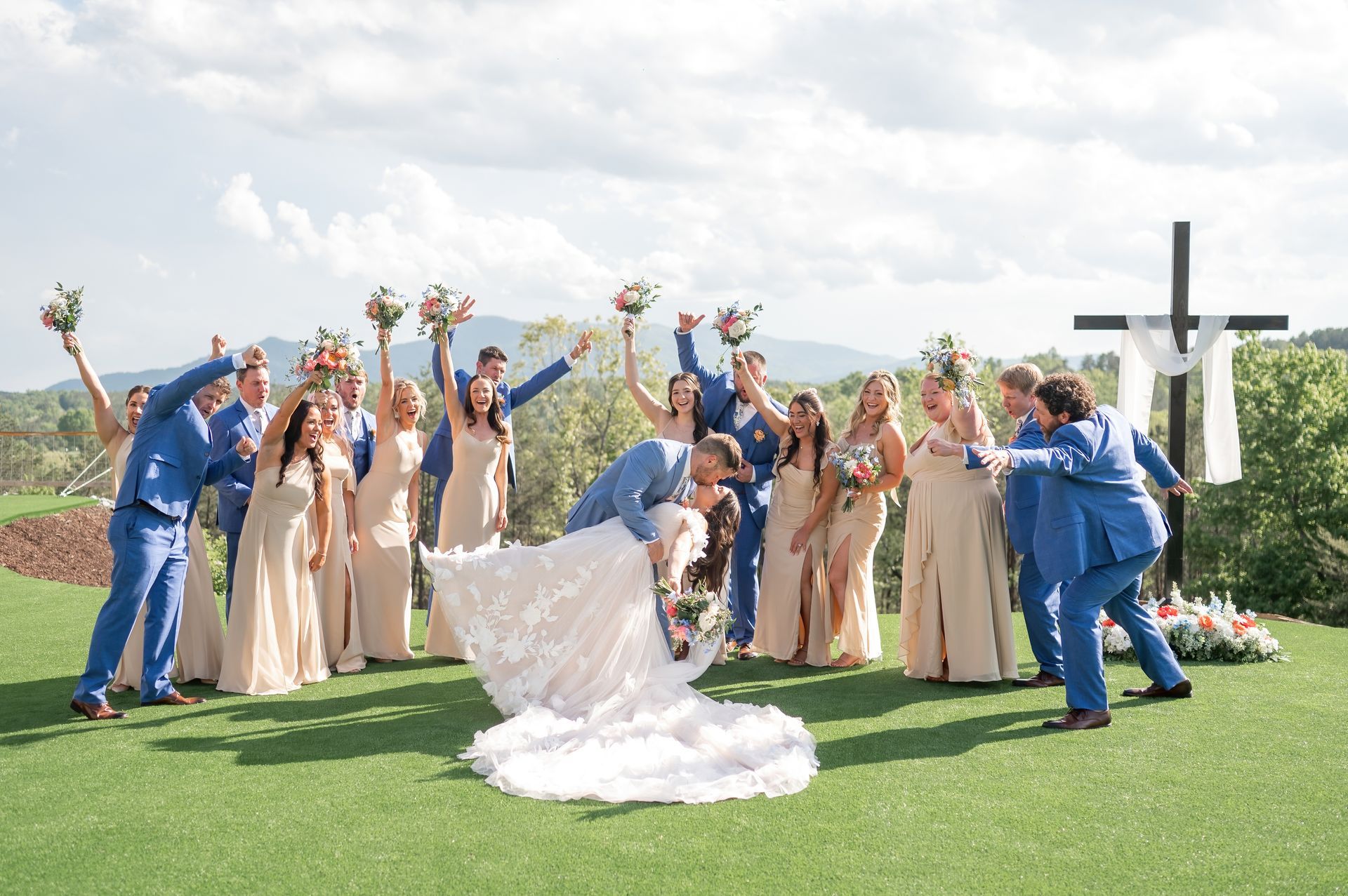 Whether it’s playful poses, heartfelt moments, or epic squad shots, our couples and their crews know how to bring the fun! From matching robes and goofy socks to candid laughs and formal flair—check out how they’ve made their wedding party photos as unforgettable as the big day itself.